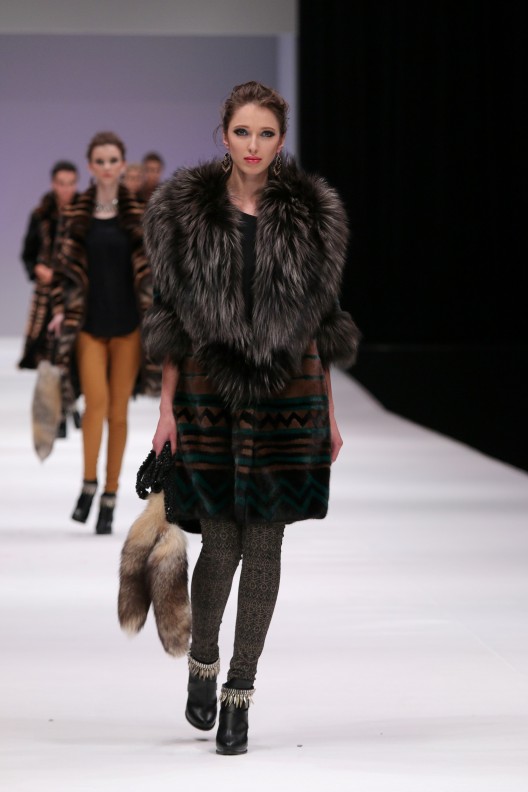以純樸的藏藍及棕色為調子的頸巾、中褸及長褸系列。物料採用狐毛、水貂及紫貂,運用剪毛技術令設計更輕巧。由染黑、紫、藍、綠、黃、啡等不同色彩相間出變化多端的線條花紋,散發著濃烈民族風格。