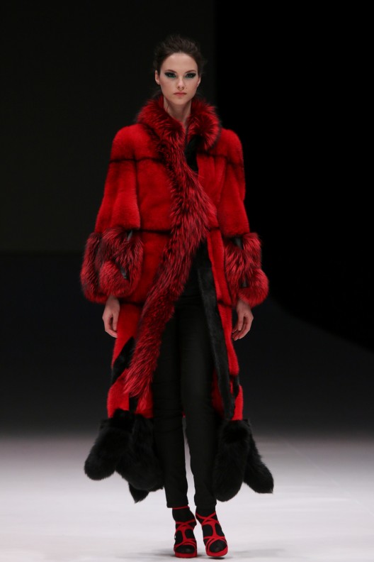 以豔紅襯托出華麗感覺的「擺動華麗」皮草系列,以中褸、長褸及連身裙為主。採用了染紅色十字貂、水貂、狐毛及銀狐,襯以染黑色水貂皮流蘇,反映民族味之餘,盡顯黃金二十年代的姿采。