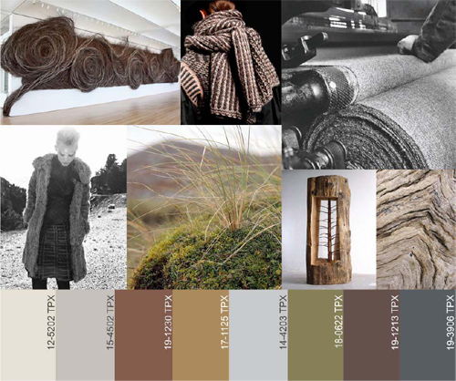Colour – Emerging from the undergrowth, woody browns and moss green sit alongside pebble tone neutrals and cloud grey, while shadowy blue/black and burnt chocolate add a mysterious dark intensity to the palette.