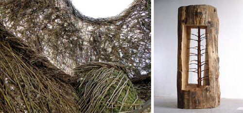 - In The Hidden Life Within, artist Giuseppe Penone carves out a young tree with an older tree to reveal its past, showing us what once grew inside so that it may now "live in the present." Inspired by the quiet slowness of growth in the natural world, the artist asks us to take a moment to stop and think about the concept of time and how there is a common vital force in all living things.