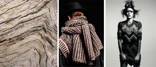 - Textural knits are a key component of the trend and create an earthy, organic sense of luxury when worked against the contrasting sleek, glossiness of fur.