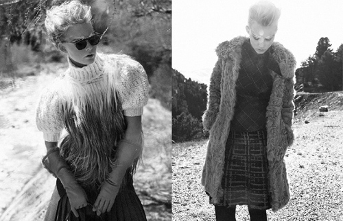 - Sleek two-tone mink and dyed kid sit in juxtaposition with a textured tweed and ribbed knit for a modern country feel.