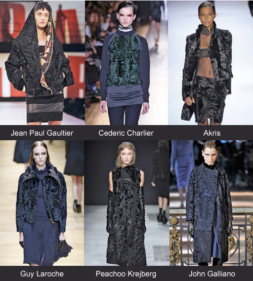 斯瓦卡拉羊皮将成为下个冬季的主打皮草面料,因为我们已经看到它几乎出现在 所有服装款式中。很喜欢Jean Paul Gaultier的连帽衫;Cederic Charlier的双色套头衫更洋溢着青年的活力朝气;Akris的黑色套裙代表了未来皮草两件套的趋势;Guy Laroche的机车夹克和John Galliano的修身大衣可以说是电光蓝染色皮草的典范!Peachoo Krejberg的黑色羊皮连衣裙,无袖式设计显得前卫时尚。