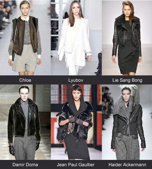 机车夹克已经流行了几季,但是皮草演绎又赋予它新的生命。巴黎时装周无疑成 为了最佳舞台!各款皮草机车夹克简直令人眼花缭乱。Chloe’s的机车马甲轻便 简洁,长短毛完美搭配纤维面料,可以说是下个冬季的必备款;Lyubov 和 Lie Sang Bong皮草和皮革的结合都称得上无懈可击,每个女孩无疑都想纳入自己的 衣橱;Damir Doma的双排扣皮草上衣简洁时尚;Jean Paul Gaultier皮草镶边的鳄 鱼皮夹克将奢侈诠释到了极致;Haider Ackermann的羊毛领口增添了无限柔软的 温暖。