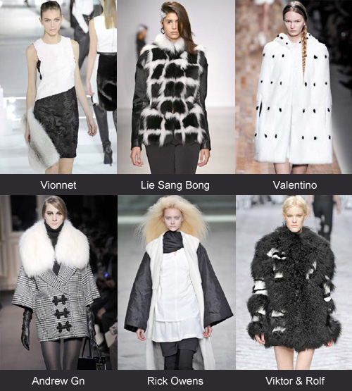 巴黎时装周的皮草裙装呈现出摩登奢侈的感觉,款型从贴身款到夸张款,不一而 足,使得皮草更能轻松进入每个女性的衣橱。Allude的A型裙显得干净简洁,重 点是颜色和质地;Akris和Celine裙子的长度和款式比较夸张,但是依然侧重低调 的典雅;Vionnet黑白大色块的强烈对比显得冲击力十足;Guy Laroche大胆的色 泽和不对称的设计摩登简练;Gareth Pugh羊皮质地的拖地长裙创造了时尚晚装的 新境界。